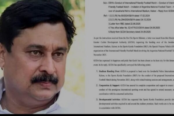 ‘കലൂർ സ്റ്റേഡിയം സ്പോണ്സർക്ക് കൈമാറിയത് കായിക മന്ത്രി പറഞ്ഞിട്ട്’; രേഖ പുറത്തുവിട്ട്