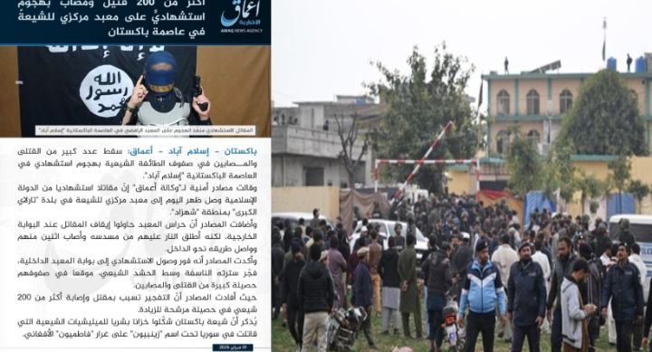 ഇസ്ലാമാബാദ് ചാവേർ ആക്രമണത്തിൻ്റെ ഉത്തരവാദിത്വം ഏറ്റെടുത്ത് ഇസ്ലാമിക് സ്റ്റേറ്റ്. ചാവേർ ആയത് സെയ്ഫുള്ളാ അൻസാരി എന്നാണ് വിവരം. ആക്രമണത്തിൽ പങ്കുണ്ടെന്ന് പാകിസ്താന്റെ ആരോപണം ഇന്ത്യ തള്ളി. വാർത്താ ഏജൻസിയായ അമാഖിലൂടെയാണ് ചാവേറാക്രമണത്തിന്റെ ഉത്തരവാദിത്വം ഇസ്ലാമിക് സ്റ്റേറ്റ് ഏറ്റെടുത്തത്. പ്രത്യയശാസ്ത്രപരമായ എതിരാളികൾ എന്ന് വിശേഷിപ്പിച്ചവർക്കെതിരായ പ്രചാരണത്തിന്റെ ഭാഗമാണ് ആക്രമണം എന്നും ചാവേർ സെയ്ഫുള്ള അൻസാരി ആണെന്നും ഇസ്ലാമിക് സ്റ്റേറ്റ്.ഇസ്ലാമാബാദിലെ ഷിയാപ്പള്ളിയിൽ ഉണ്ടായ ചാവേർ ആക്രമണത്തിൽ 69 പേരാണ് മരിച്ചത് 169 പേർക്ക് പരുക്കേറ്റിരുന്നു. ആക്രമണത്തിൽ ഇന്ത്യയ്ക്ക് പങ്കുണ്ടെന്ന പാകിസ്താന്റെ ആരോപണം ഇന്ത്യൻ വിദേശകാര്യമന്ത്രാലയം തള്ളി. സ്വന്തം പ്രശ്നങ്ങൾ പരിഹരിക്കാതെ മറ്റുള്ളവരെ കുറ്റപ്പെടുത്തുന്നത് നിർഭാഗ്യകരമാണെന്ന് ഇന്ത്യ പ്രതികരിച്ചു. നടന്നത് ഹീനമായ പ്രവർത്തിആണെന്നും കുറ്റക്കാരെ നിയമത്തിനു മുന്നിൽ കൊണ്ടുവരുമെന്നും പാക് പ്രധാനമന്ത്രി ഷഹബാസ് ഷെരീഫ് പറഞ്ഞു.