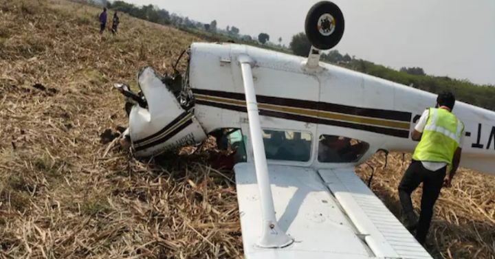 കർണാടകയിൽ പരിശീലന പറക്കലിനിടെ വിമാനം തകർന്നു വീണു; പൈലറ്റ് അത്ഭുതകരമായി രക്ഷപ്പെട്ടു