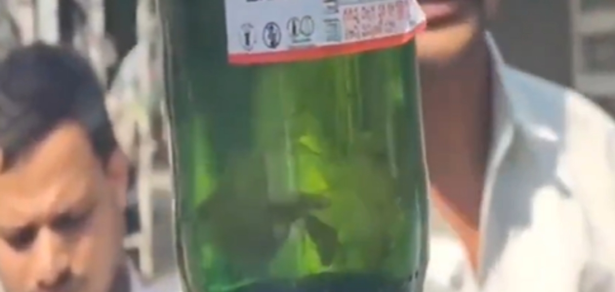 മല്ലപൂരിലെ മദ്യവില്പ്പനശാലയായ ജെയ്പീ വൈന് ഷോപ്പില് നിന്നാണ് ഒരു ഉപഭോക്താവ് കിംഗ്ഫിഷര് ലൈറ്റ് ബിയര് കുപ്പി വാങ്ങിയത്. കുപ്പി തുറക്കുന്നതിന് മുന്നേ തന്നെ അതിനുള്ളില് എന്തോ ഉള്ളതായി അയാള് ശ്രദ്ധിച്ചു. പിന്നീടാണ് അത് മീനാണെന്നും അതിന് ജീവനുണ്ടെന്നും വ്യക്തമായത്.തുടര്ന്ന് കുപ്പിയുമായി കടയിലെത്തിയ ഇയാള് ജീവനക്കാരോട് വിവരം പറഞ്ഞു. എന്നാല് അവിടെ അല്ല മദ്യം നിര്മിക്കുന്നതെന്നും കമ്പനി അയച്ചുതരുന്നത് വില്ക്കുക മാത്രമാണ് ചെയ്തതെന്നുമാണ് ജീവനക്കാര് പറഞ്ഞത്. പരാതി ഗൗരവമായി പരിഗണിക്കുന്നതിന് പകരം ജീവനക്കാര് തന്റെ ആശങ്കകള് തള്ളിക്കളഞ്ഞുവെന്ന് ഉപഭോക്താവ് പറഞ്ഞു. പരാതി ഉണ്ടെങ്കില് ബിയര് കമ്പനിയെ സമീപിക്കണമെന്ന് അവർ പറഞ്ഞതായും ഉപഭോക്താവ് ചൂണ്ടിക്കാട്ടി.ഇത് ഉപഭോക്താവിനെ പ്രകോപിപ്പിച്ചതായും പിന്നാലെ ഇരു കൂട്ടരും തമ്മില് വാക്കേറ്റമുണ്ടായെന്നുമാണ് റിപ്പോര്ട്ടുകള്. ദൃശ്യങ്ങള് സോഷ്യല് മീഡിയയില് പ്രചരിച്ചതോടെയാണ് സംഭവം വൈറലായത്. സീൽ ചെയ്ത കുപ്പിയിൽ എങ്ങനെ ജീവനുള്ള മീനെത്തി എന്നതാണ് പലരുടെയും സംശയം.