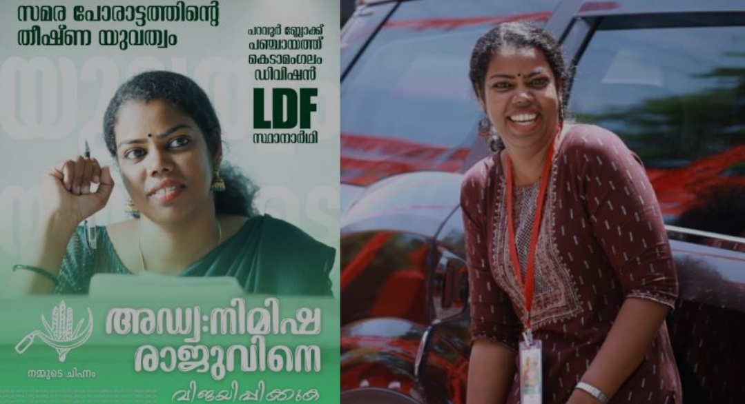 എഐഎസ്എഫ് നേതാവ് നിമിഷാ രാജുവിനെ ഏറണാകുളം പറവൂർ ബ്ലോക് പഞ്ചായത്തിലേക്ക് മത്സരിക്കും. എസ്എഫ്ഐ മുൻ സംസ്ഥാന പ്രസിഡന്റ് പി എം ആർഷോയ്ക്കെതിരെ പരാതി നൽകിയ നിമിഷാ രാജുവിനെ എസ്എഫ്ഐ യുടെ എതിർപ്പ് മറികടന്നാണ് മത്സരത്തിന് ഇറക്കിയത്. എ ഐ എസ് എഫ് സംസ്ഥാന ജോയിന്റ് സെക്രട്ടറിയാണ് നിമിഷ രാജു. പറവൂർ ബ്ലോക്ക് കെടാമംഗലം ഡിവിഷനിലാണ് നിമിഷ മത്സരിക്കുക. ഔദ്യോഗിക പ്രഖ്യാപനം നാളെയുണ്ടാകും.