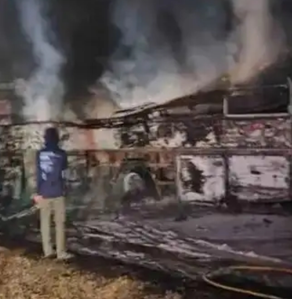 കർണാടകയിലെ ചിത്രദുർഗയിൽ കണ്ടെയ്നർ ലോറി സ്ലീപ്പർ ബസിൽ ഇടിച്ചതിനെ തുടർന്നുണ്ടായ തീപിടിത്തത്തിൽ ഒമ്പത് പേർ മരിച്ചു. ബംഗളൂരുവിൽ നിന്ന് ശിവമോഗയിലേക്ക് പോകുകയായിരുന്ന ബസാണ് അപകടത്തിൽപ്പെട്ടത്. ഗോർലത്തു ക്രോസിൽ ദേശീയപാത 48ലാണ് അപകടം നടന്നത്.
