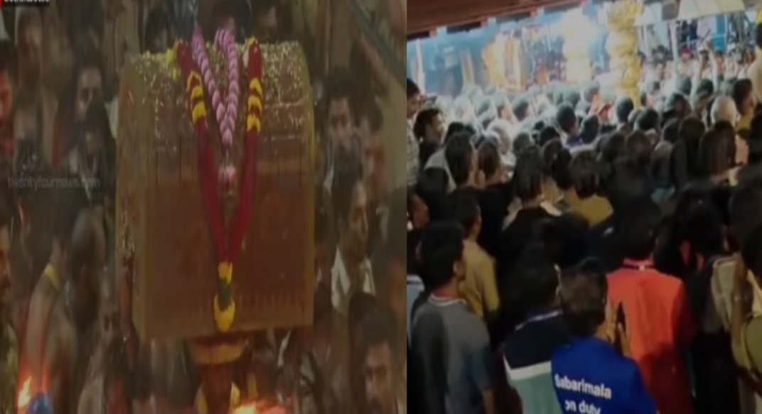 ഭക്തി സാന്ദ്രമായി സന്നിധാനം. തങ്കയങ്കിചാർത്തിയുള്ള ദീപാരാധന പൂർത്തിയായി. ശരംകുത്തിയിൽ എത്തിച്ചേർന്ന ഘോഷയാത്രയെ ആചാരപരമായ വരവേൽപ്പ് നൽകിയാണ് ദേവസ്വം ഉദ്യോഗസ്ഥർ ചേർന്ന് സ്വീകരിച്ചത്. ഘോഷയാത്രയോടനുബന്ധിച്ചു പമ്പയിലും സന്നിധാനത്തും ഭക്തർക്ക് നിയന്ത്രണം ഏർപ്പെടുത്തിയിരുന്നു. ദീപാരാധനയ്ക്ക് ശേഷമാണ് തീർത്ഥാടകർക്ക് പ്രവേശനം അനുവദിച്ചിരുന്നത്.